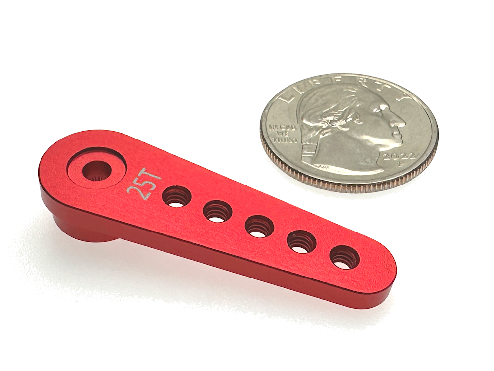 Shown on bottom, comparing to our standard size Aluminum Servo Arm.